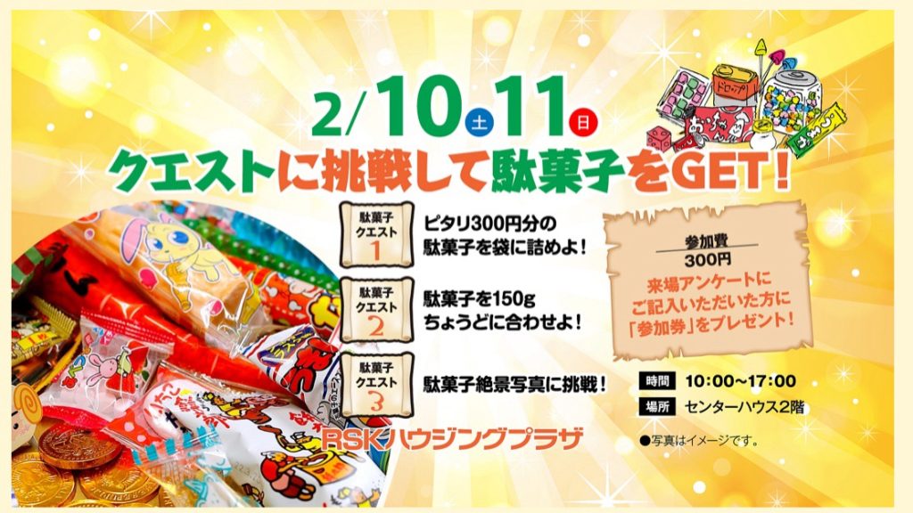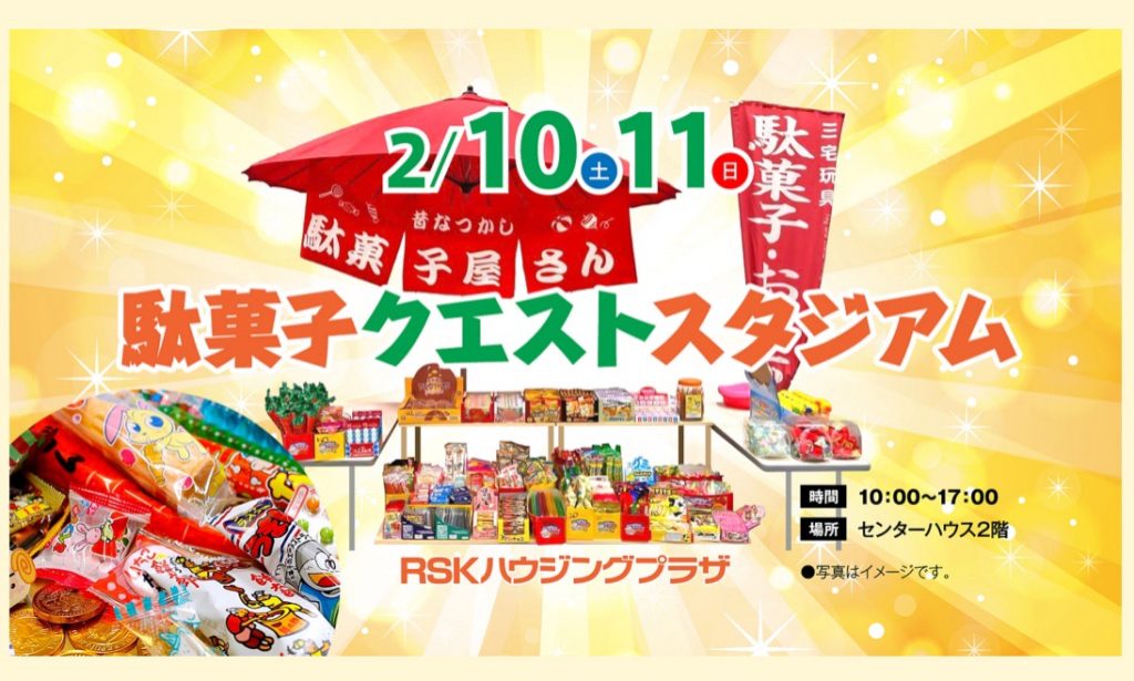 センターハウス2階にて、駄菓子クエストスタジアムを開催します。