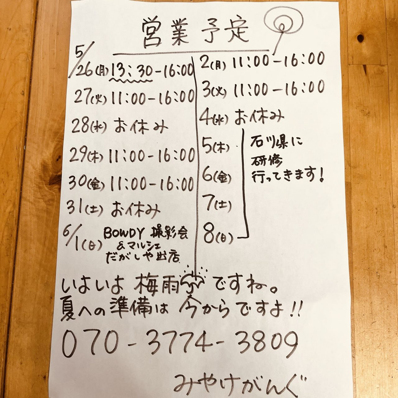 営業日のお知らせ5月26日〜6月8日 2025.05.25 営業日のお知らせ 営業日のお知らせ 岡山ももうすぐ梅雨入りでしょうか🐌 6月の始めは お休み多めですので ご来店の際は注意しておこしください。