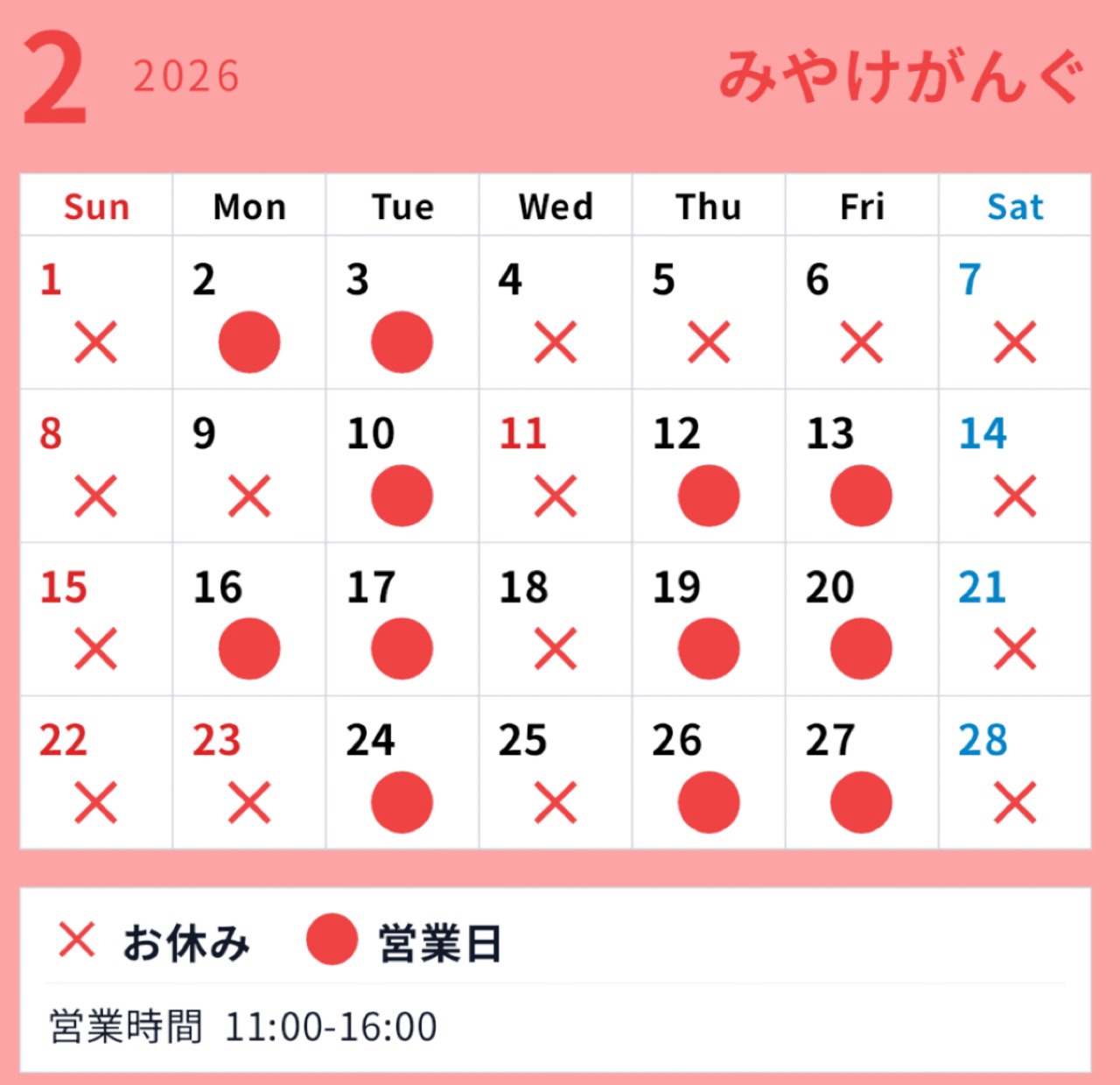 2026年2月の営業予定 2026.02.02 営業日のお知らせ 営業日のお知らせ いつもありがとうございます🍭 もうすぐ節分👹 豆まきをして しっかり福を呼び込みましょう🫘 2日・3日ご来店のお客様には福豆プレゼント🎁